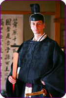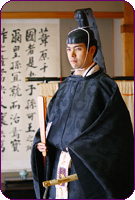 婚礼では、縫腋束帯の平緒、太刀をつけた姿をしていただきます。