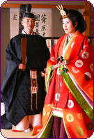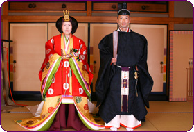 新郎新婦が婚礼などに着たいと言われると、ご両親様が見分不相応ではと心配されます。 しかし、人生最高の時に、威儀を正した日本人として最高の衣装をお召しいただき、これからの人生をより良い、繁栄したものにするべく励んでいっていただきたいと願っております。束帯は、人生の門出にふさわしい最高の衣装だと思っております。