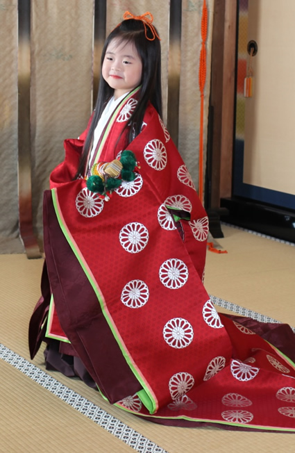 皇室の紀宮清子様や、愛子様、眞子様佳子様の七五三の衣装です。